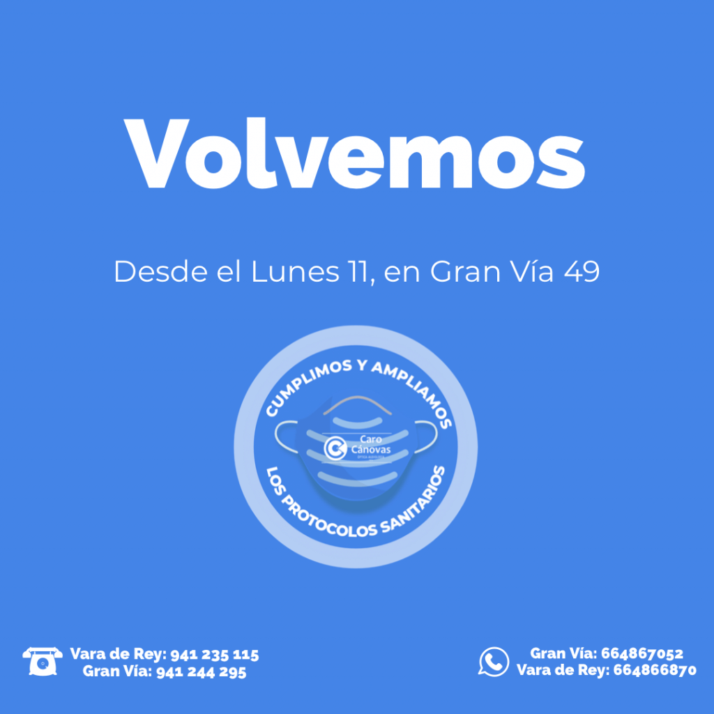 ¡Actualización 20/01/20! Continuamos con nuestros horarios, estaremos en Gran Vía 49 y Vara de Rey 41 en horario de 9:45 a 13:30 y de 16:30 a 20:00 de lunes a viernes. Los sábados sólo en Gran Vía 49 de 9:45 a 13:30.